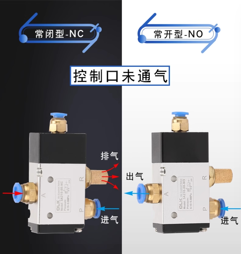NC (normally closed): the valve is closed when there is no air, and it can only be opened after being driven by signal/air pressure.