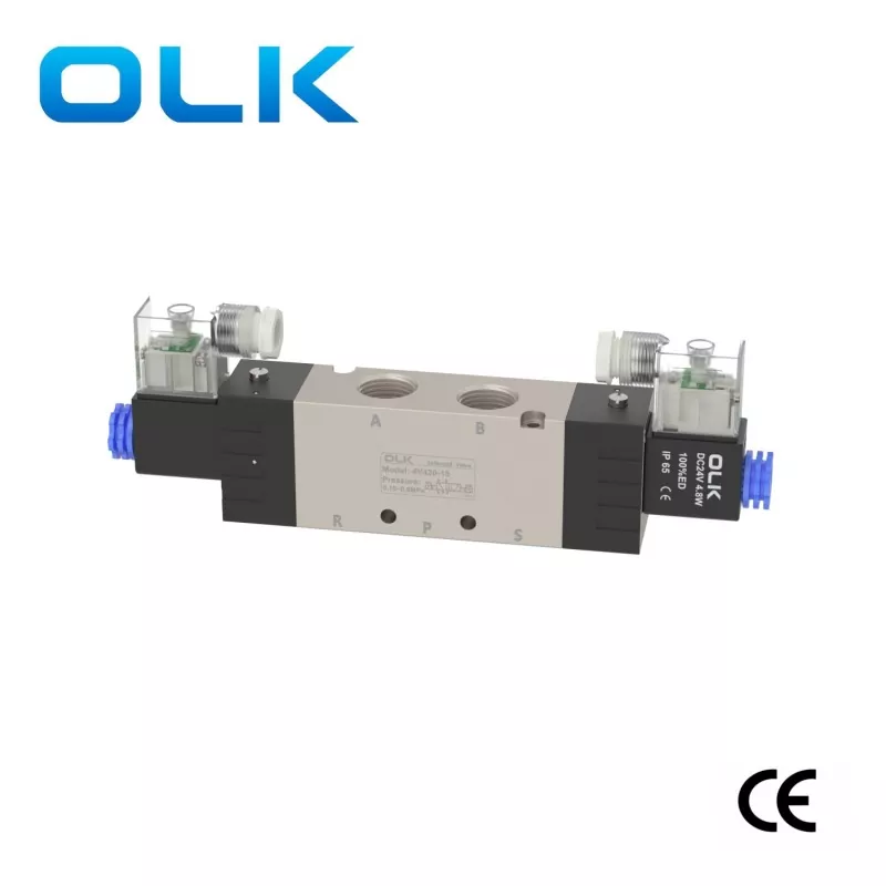 OLK 4V400 Solenoid Valve 5 Way, 2 position 5way or 3 position 5 way pneumatic solenoid valve, The size of the 4V400 series solenoid valve is the largest model. The interface specification is usually 1/2 ". The surface is made of high-quality aluminum alloy raw material, which runs smoothly and responds quickly. It has strong stability and precise polishing treatment without wear marks. It uses sufficient pure copper coils, which are not easy to overheat and have a longer and more durable service life.
