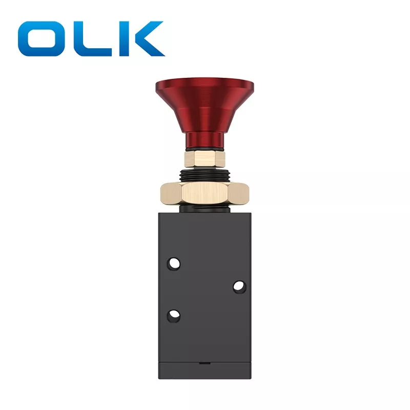 OLK 3 way 5way red emergency stop valve is a safety control component used to rapidly shut off the air supply in emergency situations. It is widely used in automated equipment, production lines, and any pneumatic system requiring safety protection. When an abnormal condition occurs or the equipment needs to be stopped immediately, simply press the emergency stop valve to instantly cut off the air supply, ensuring the safety of both personnel and equipment.