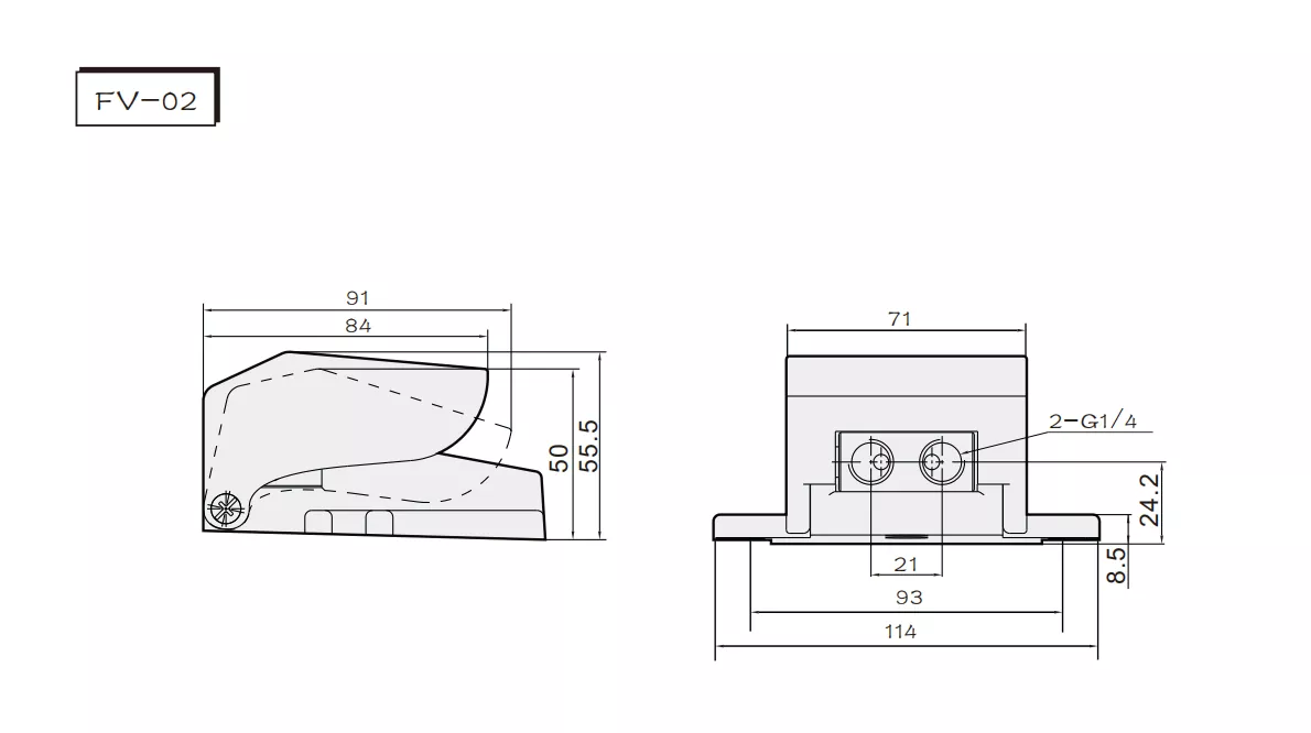 FV-02 Pneumatic foot pedal valve 3 way General parameters