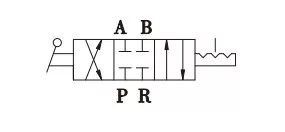 When switched to the 01 gear, the A exhaust port releases air, the B exhaust port vents, and the cylinder retracts.