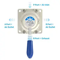 Ouleikai (OLK) HV200A/B two-way four-port hand-operated valves are manually operated, with air path switching achieved by rotating the valve handle. They are easy to operate and intuitive, requiring no additional energy supply. The HV200B 2/4 port valve features a built-in silencer at the bottom exhaust port.