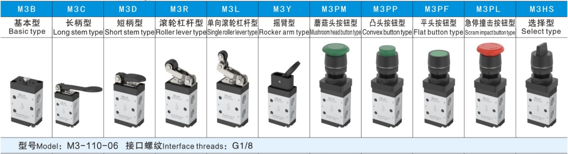 3. The M3C, M3D, M3Y, M3PF, M3PM, M3PP, and M3PLM3HS series are manually operated, with various structural shapes of control heads for convenient use under different conditions.
