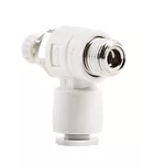 This valve is mounted directly on the cylinder, saving fittings, tubing, working time, and cost. With its swivel design, the piping direction can be freely adjusted after installation. The throttle valve is also equipped with a locking mechanism.
