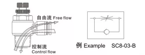 The SL flow control valve function is achieved through a one-way sealing ring. Photo (a) shows exhaust throttling, and photo (b) shows inlet throttling—the difference comes only from the installation direction of the sealing ring.