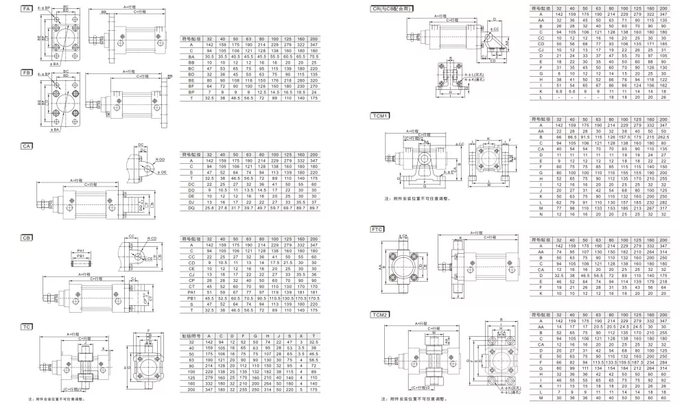 SU pneumatic cylinder and SI air cylinderCannot be interchanged, and accessories (CA /CB foot brackets,FA-flanges,TC-M, joint heads) are not compatible