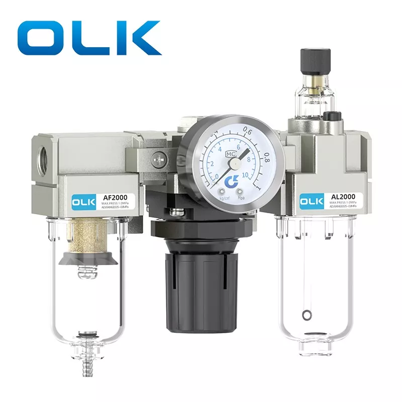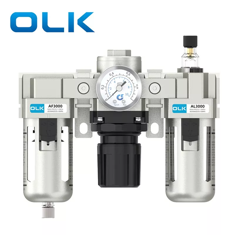 The SMC Type AC FRL Unit (Filter-Regulator-Lubricator) is a pneumatic fundamental component that integrates air source filtration, pressure reduction and regulation, and lubrication treatment. It provides clean, stable, and lubricated compressed air for pneumatic systems, thereby extending the lifespan of pneumatic components and enhancing system stability.The OLK AC Series FRL Unit acts as the essential "guardian" of modern pneumatic systems.