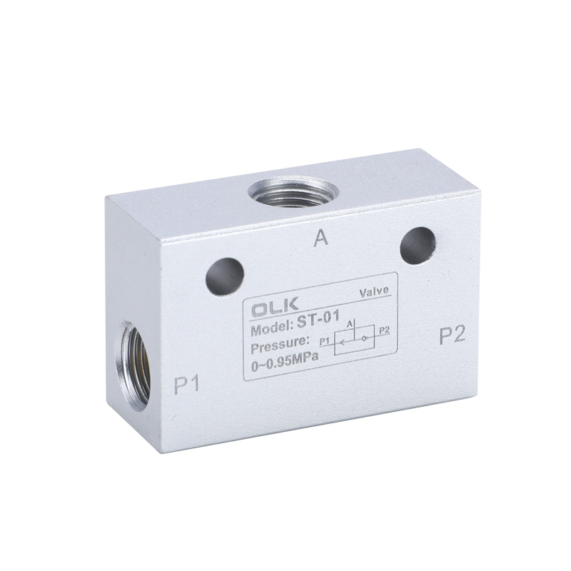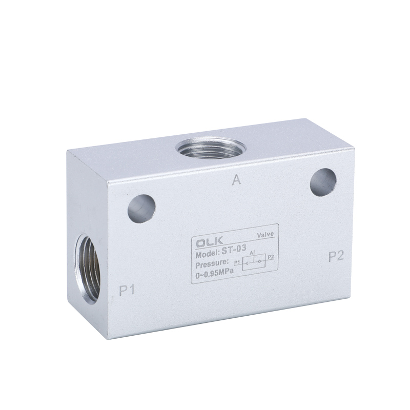 Ouleikai (OLK) ST series shuttle valves has two inlet ports "IN" and one outlet port "OUT". When one of the imports has an input, the export has an output. If the two inlet pressures are not equal, the high-pressure inlet and outlet are connected. If the two inlet pressures are equal, the inlet with the first input pressure is connected to the output port.